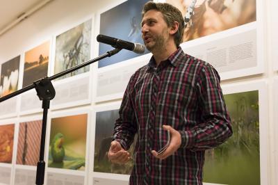 Otwarcie wystawy "Żywy album przyrody", 6.04.2018, na zdjęciu Sebastian Słonina - ZPFP, autor zdjęć, fot. Krzysztof Morcinek