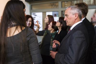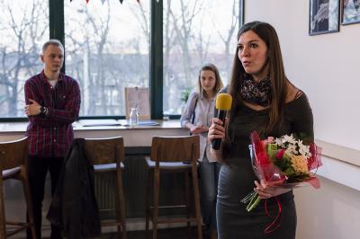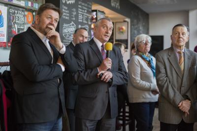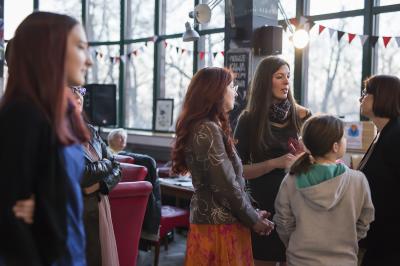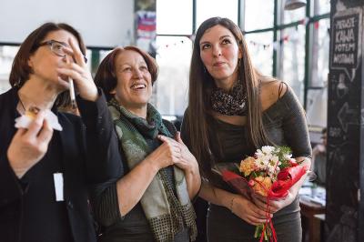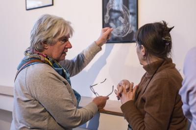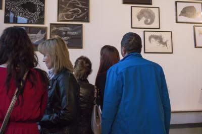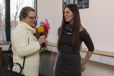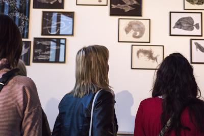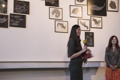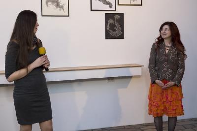 Otwarcie wystawy Natalii Klęczar, od lewej Natalia Klęczar, Agata Smalcerz, dyrektor Galerii Bielskiej BWA