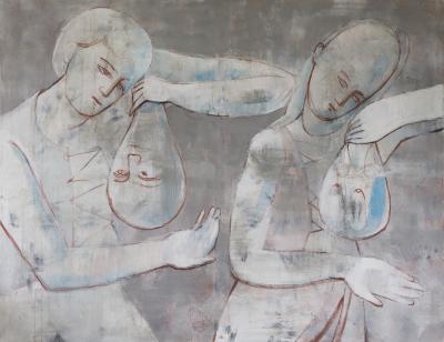 "Wystawa jest spotkaniem dwóch niezwykłych artystówi i dwóch odmiennych stylistyk malarskich. Mimo różnic w warstwie materialnej, łączy je silny akcent stawiany na warstwę duchową obrazu. Analityczna postawa wychowanego w kulturze protestanckiej Daniela Balabána, interpretującego średniowieczne portrety mistrza Teodoryka postmodernistycznymi zabiegami malarskimi, spotyka się z oszczędnymi w formie obrazami Jarosława Modzelewskiego, silnie działającymi płaszczyzną koloru i syntetycznie przedstawianą postacią człowieka. Obecność symboli religijnych w pracach obu malarzy, staje się pretekstem do dyskusji na temat wartości moralnych i roli artysty w materializowaniu piękna - także w sferze duchowej. Dzięki intuicji i wrażliwości oraz wypracowanej technice malarskiej obaj umiejętnie stawiają pytania o sens ludzkiej egzystencji. Buntowniczy temperament Balabána kontrastuje z kontemplacyjną postawą Modzelewskiego. Pojawiające się w ich obrazach akcenty humoru i ironii uwalniają autorów od patosu i moralizowania. Duże formaty prezentowanych prac pozwalają widzowi dosłownie zanurzyć się w malarstwie".