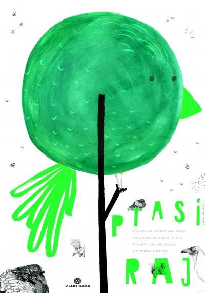 Zofia Lasocka - graduate of the Faculty of Graphic Arts at the Academy of Fine Arts in Warsaw. In 2018, she defended her Master's degree with distinction in two specializations: Publishing Graphics and Illustration. She had prepared her graduation series of posters entitled Tree - Friend for the Gaya Club. Each of the posters illustrates one of the numerous benefits of trees in the ecosystem. She uses catchy titles for the posters, including: Bird Paradise, Heat Buster, City Cleaner, Noise Barrier, Calm Giver, Forest Playground.