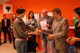 od lewej: Agata Smalcerz – dyrektor Galerii Bielskiej BWA; Ewa Kozak, kuratorka konkursu, Paweł Balcerzak – przewodniczący jury konkursu, wiceprezes Stowarzyszenia Projektantów Form Przemysłowych; Ewa Gołębiowska – dyrektor Śląskiego Zamku Sztuki i Przedsiębiorczości w Cieszynie; Jacek Krywult – prezydent Bielska-Białej; Zbigniew Michniowski – zastępca prezydenta Bielska-Białej, prezes Stowarzyszenia Region „BESKIDY”; Anna Krężelok – kuratorka konkursu; prof. Czesława Frejlich – redaktor naczelna magazynu projektowego „2+3D” od lewej: Agata Smalcerz – dyrektor Galerii Bielskiej BWA; Ewa Kozak, kuratorka konkursu, Paweł Balcerzak – przewodniczący jury konkursu, wiceprezes Stowarzyszenia Projektantów Form Przemysłowych; Ewa Gołębiowska – dyrektor Śląskiego Zamku Sztuki i Przedsiębiorczości w Cieszynie od lewej: Paweł Balcerzak – przewodniczący jury konkursu, wiceprezes Stowarzyszenia Projektantów Form Przemysłowych; Ewa Gołębiowska – dyrektor Śląskiego Zamku Sztuki i Przedsiębiorczości w Cieszynie; Jacek Krywult – prezydent Bielska-Białej