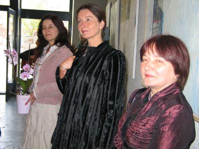 Otwarcie wystawy, 24 kwietnia 2009  Otwarcie wystawy Janusza Karbowniczka, od lewej Agata Smalcerz, Jagoda Adamus, Elżbieta Kuraj, 24 kwietnia 2009