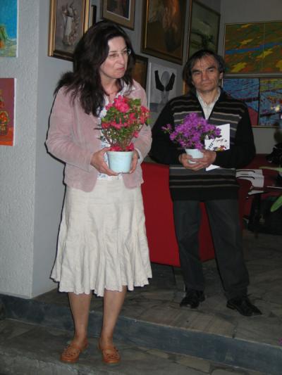Otwarcie wystawy, od lewej Lidia Sztwiertnia, Alfred Biedrawa, Helena Dobranowicz, 24 kwietnia 2009  Otwarcie wystawy, Agata Smalcerz i Janusz Karbowniczek, 24 kwietnia 2009