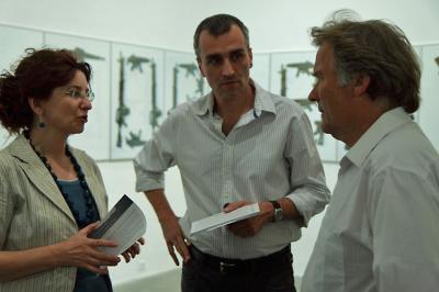 wernisaż wystawy preMedytacje / Gesty 8 lipca 2010. Fot. Krzysztof Morcinek    wernisaż wystawy preMedytacje / Gesty, od lewej Agata Smalcerz, Sławomir Brzoska, Janusz Bałdyga, 8 lipca 2010. Fot. Krzysztof Morcinek