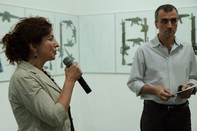 wernisaż wystawy preMedytacje / Gesty, dyrektor Galerii Bielskiej BWA Agata Smalcerz i kurator wystawy Sławomir Brzoska, 8 lipca 2010. Fot. Krzysztof Morcinek    wernisaż wystawy preMedytacje / Gesty, kurator wystawy Sławomir Brzoska, 8 lipca 2010. Fot. Krzysztof Morcinek