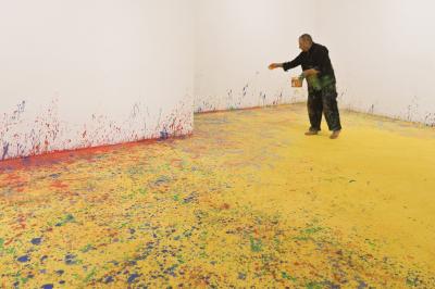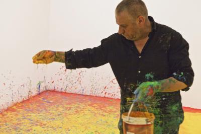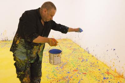 Strukturę malarskiej materii artysta skonfrontował z rzeczywistością tego, co na zewnątrz: okna, które dwa lata temu zniknęły z przestrzeni górnej sali teraz powróciły w „wersji cyfrowej" - jako wideoprojekcja zarejestrowanego obrazu ulicy Mickiewicza - dokładnie tych miejsc, które znajdują się za ścianą. Codzienne życie biegnie więc nadal tuż obok, sztuka zaprasza do kontemplacji i wyciszenia.