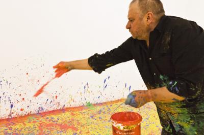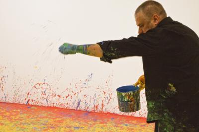 Artysta użył metody action painting, zapoczątkowanej przez Jacksona Pollocka w latach 50. XX wieku. Jednak w przeciwieństwie do amerykańskiego artysty Leon Tarasewicz nie wybiera fragmentu zamalowanego płótna, nie wycina i nie umieszcza w ramach. Wręcz przeciwnie: nie zgadza się na kawałkowanie swojej kompozycji, ma ona działać całością. Ma ogarniać osobę wchodzącą w jej przestrzeń, wywoływać emocje, ale też budzić refleksję.
